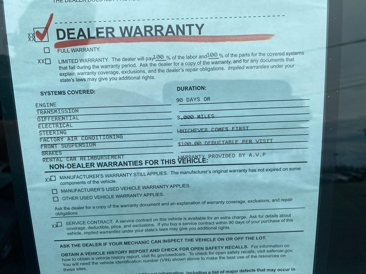 Comprehensive 90 day/3,000 Mile Warranty